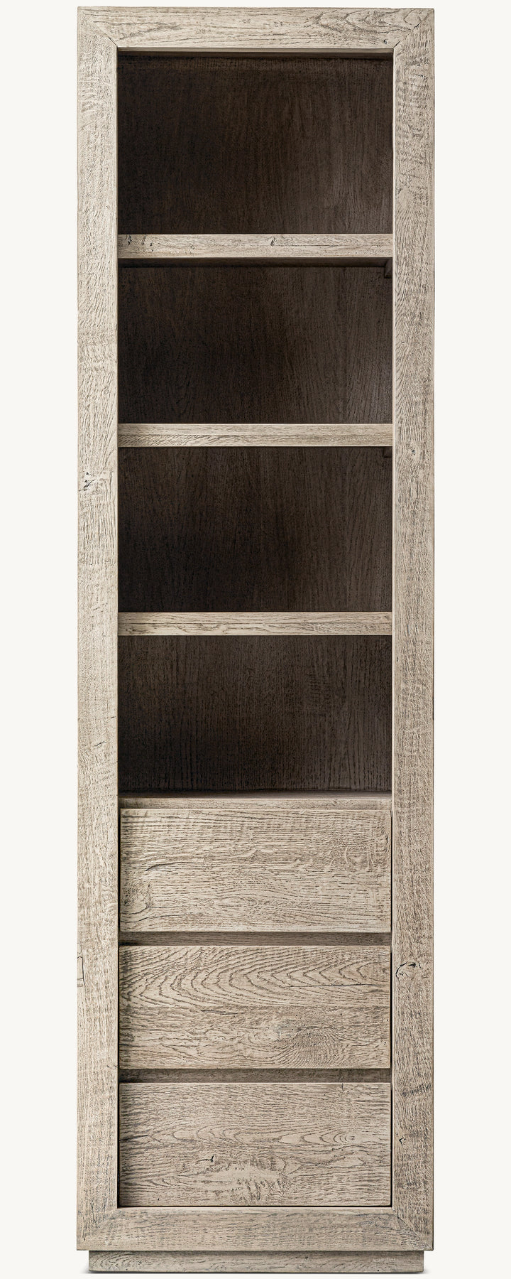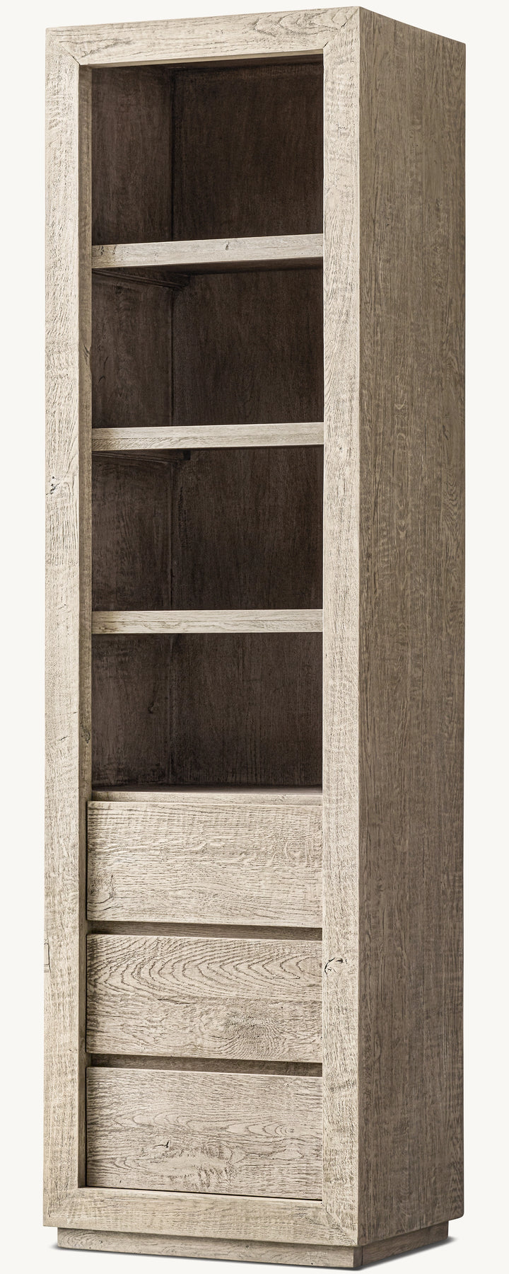 • Handcrafted of reclaimed timbers from decades-old buildings augmented with distressed white oak planks for consistency and stability