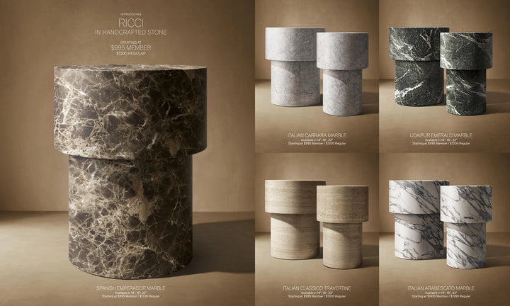 • As a natural material, all stone is porous and can be nicked, stained or scratched; avoid placing sharp or heavy objects on surface• 14" Drink Table: 14" diam., 22"H