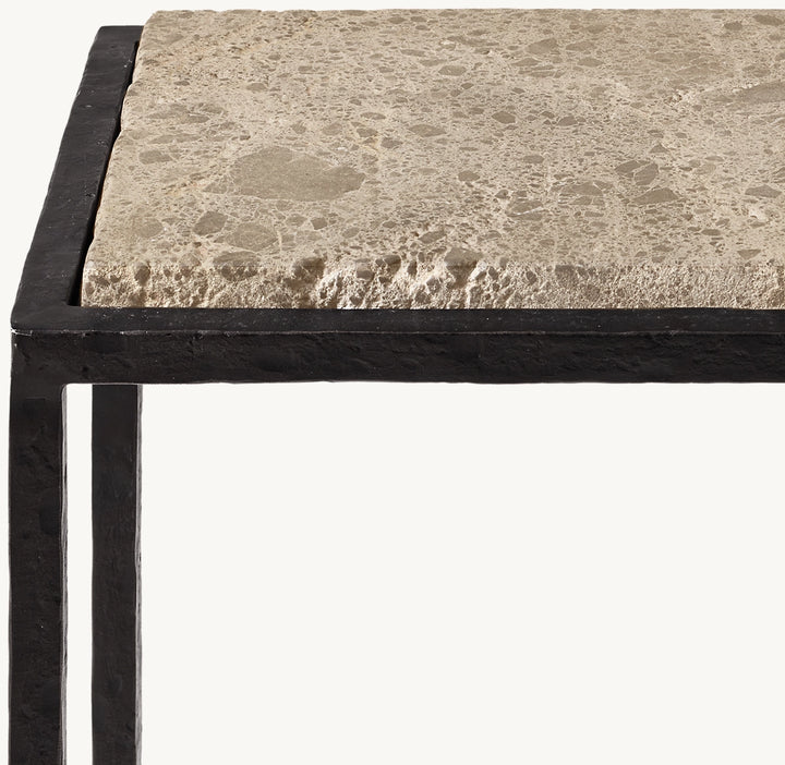 • Tabletop is handcrafted of 1"-thick marble or vein-cut Italian travertine over an engineered wood core