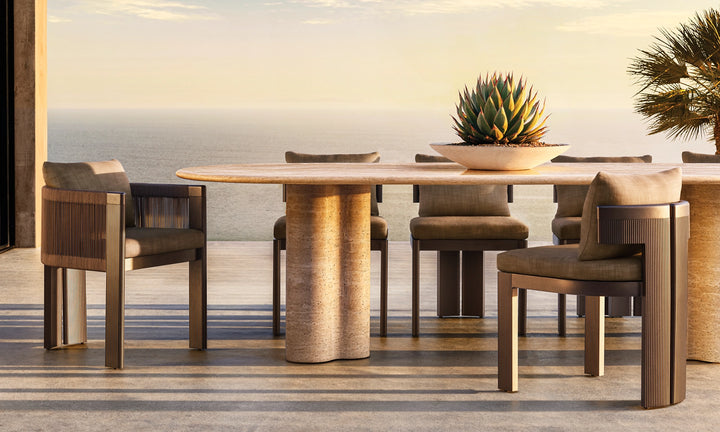 • Artisan-built of all-weather aluminum, the Striata collection features a precision welded and powdercoated frame, accented with all-weather rope, for unsurpassed quality, strength and longevity