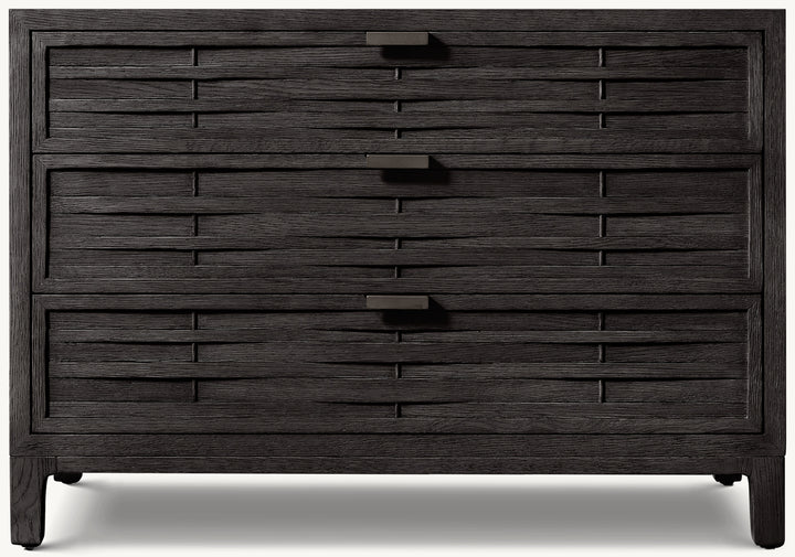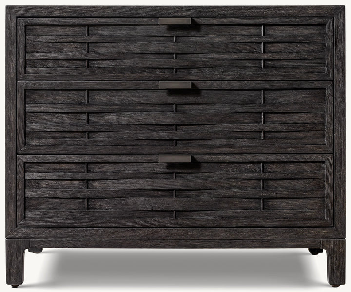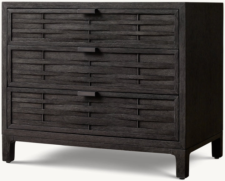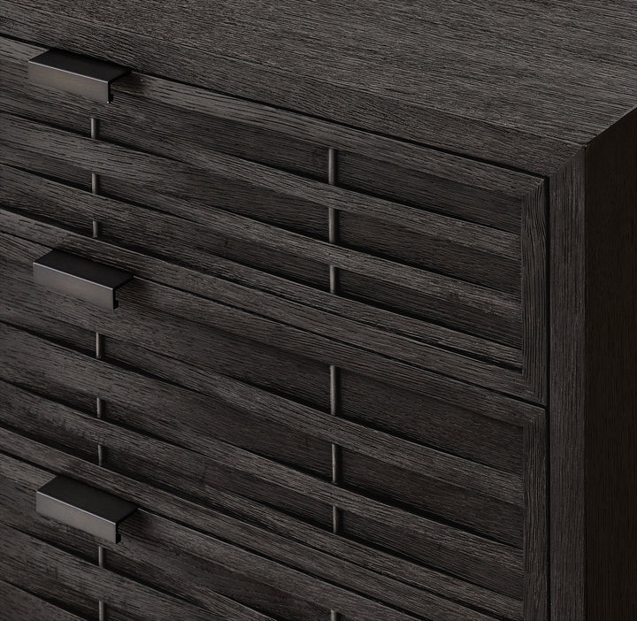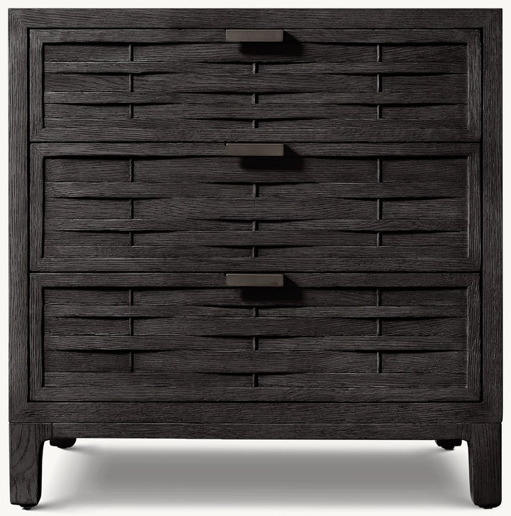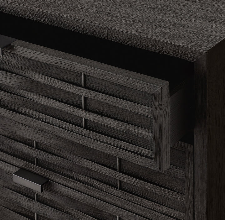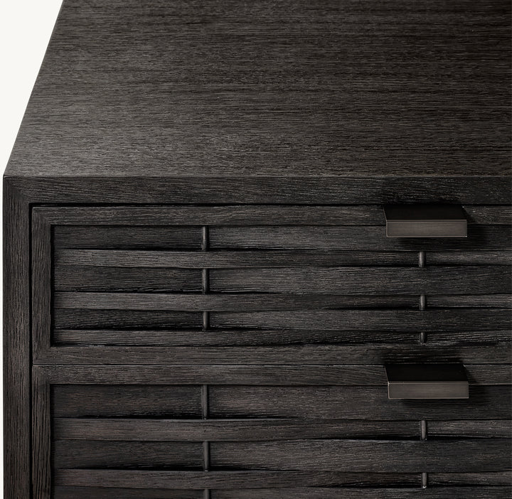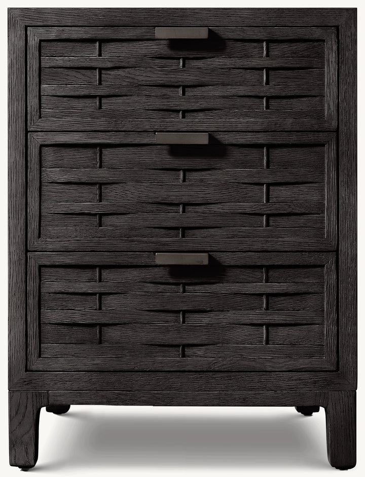 • Drawer fronts feature strips of solid American oak of varying widths, hand woven in a basketweave pattern