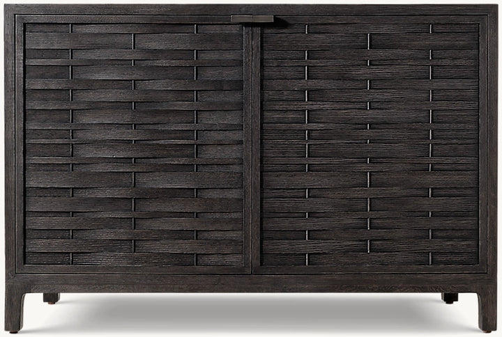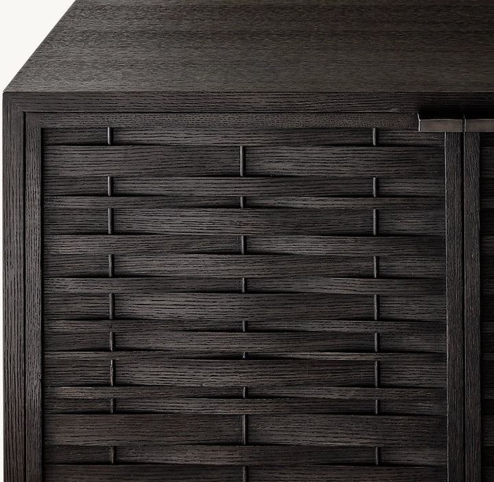 • Door fronts feature strips of solid American white oak of varying widths, hand woven in a basketweave pattern